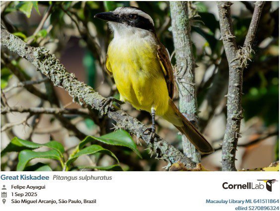 O bem-te-vi (Pitangus sulphuratus) é uma ave passeriforme da família dos Tiranídeos e provavelmente o pássaro mais popular do Brasil. É grande, barulhento e facilmente reconhecido por seu canto característico. Tem corpo rechonchudo, cabeça grande e cauda curta. Vive em áreas arbustivas, plantações, pastagens e margens de rios, sendo muito comum também em cidades, clareiras e locais próximos à água.
